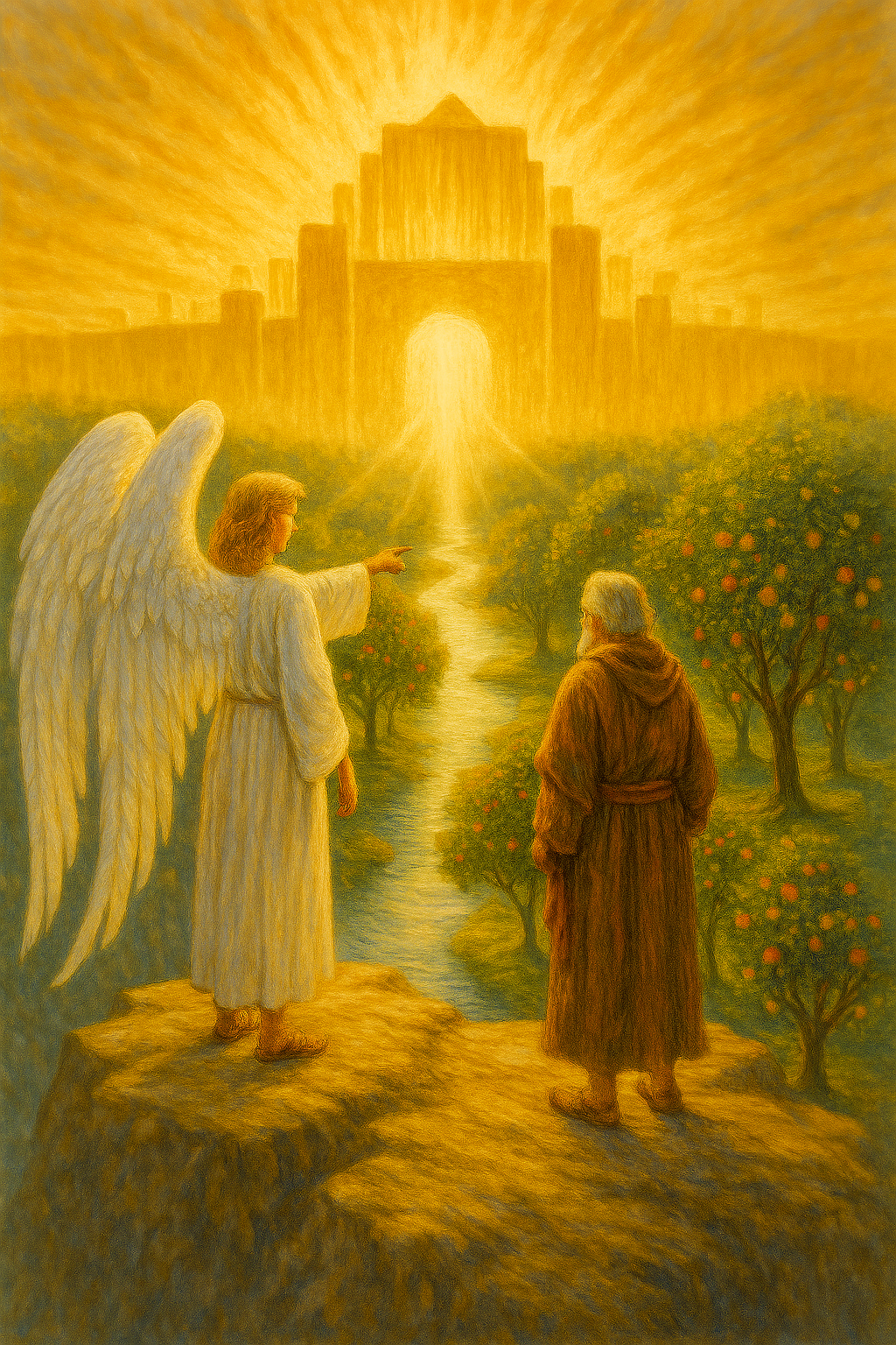 "The angel carried me [John] away... to a mountain great and high, and showed me the Holy City, the new Jerusalem, coming down out of heaven from God."